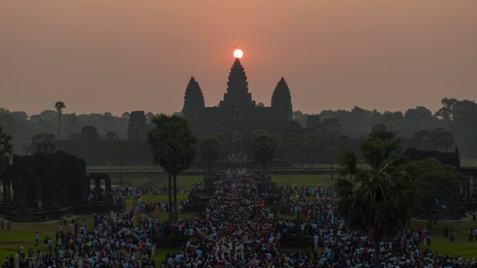 SIEM REAP, KAMBODSCHA – Mehr als 30000 Touristen strömten am Morgen des 22. März nach Angkor Wat, um den Equinox-Sonnenaufgang über dem zentralen Tempelturm zu sehen. Die seltene Ausrichtung der Sonne mit der Hauptspitze gilt als spektakulärer Beleg für das astronomische und architektonische Können des Khmer-Reichs.
