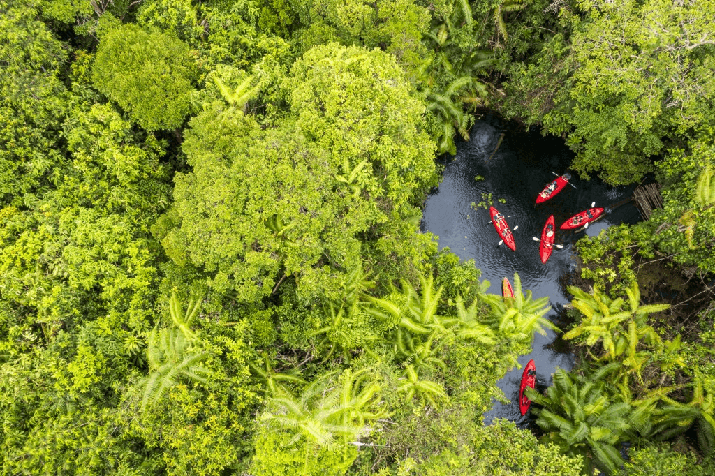 Während viele Besucher die berüchtigte James-Bond-Insel ansteuern, sollten Fans von „Jurassic World: Rebirth“ sich in den ruhigeren Ecken umsehen – den schattigen Mangrovenkanälen und nebelverhangenen Buchten, die gleichzeitig einen Blick aus der Vogelperspektive auf die Île Saint-Hubert bieten.