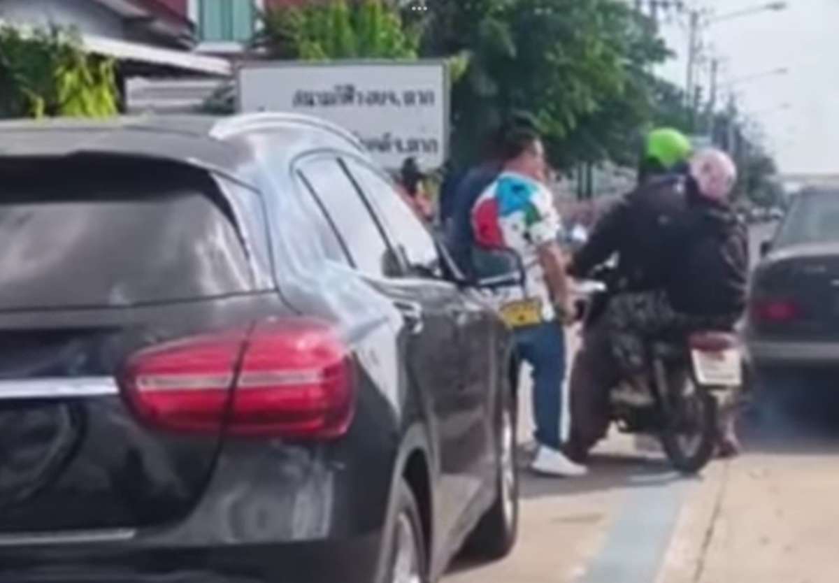 THAILAND – Ein ausländischer Mercedes-Fahrer soll absichtlich das Motorrad eines älteren Mannes und seiner 12-jährigen Enkelin geschnitten, sie zur Vollbremsung gezwungen und sie dann aggressiv konfrontiert haben. Das Mädchen brach in Panik in Tränen aus. Jetzt sucht die Polizei fieberhaft nach dem Täter.