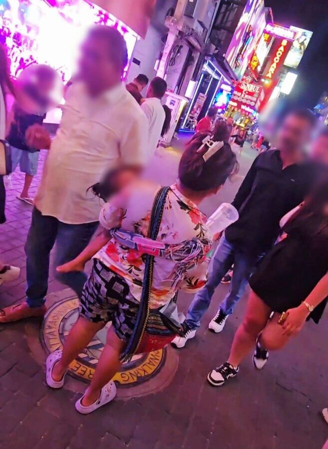 Gegen 3:30 Uhr morgens beobachteten lokale Geschäftsleute auf der Walking Street ein perfides System: Ausländische Männer und Frauen tragen Kleinkinder und nähern sich Touristen mit Rosen für 100 Baht (ca. 2,50 Euro) pro Stück. Zeigt der Tourist Desinteresse, werden die Kinder animiert, sich an deren Armen festzuhalten und so lange zu betteln, bis viele aus Verlegenheit nachgeben.