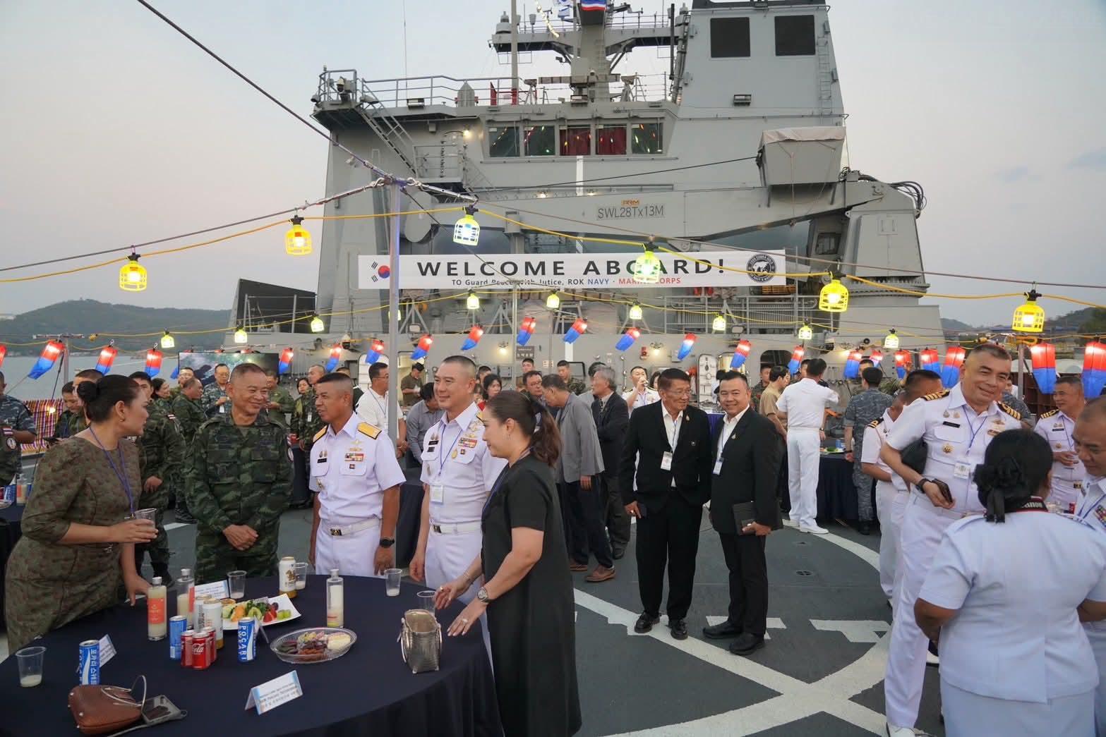 Am 21. Februar 2026 nahm Konteradmiral Etam Yuwanangkool, Kommandeur des Air and Coastal Defence Command (ACDC) der Royal Thai Navy, gemeinsam mit seiner Ehefrau Arisara Yuwanangkool an einem abendlichen Empfang an Bord der ROKS Nojeokbong (LST-689) teil.