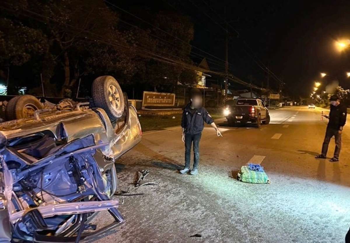 Der Pickup überschlug sich schließlich in der Nähe der Ban San Kong Schule – ein spektakuläres Ende der Verfolgungsjagd.