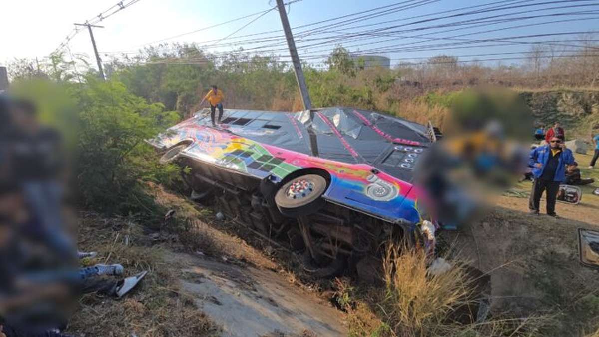 SRI RACHA, THAILAND – Bei einem Kettenunfall auf der Schnellstraße 331 nahe Sri Racha sind am Donnerstagmorgen mehr als 40 Menschen verletzt worden, als ein Shuttlebus mit Fabrikarbeitern in einen Straßengraben stürzte.