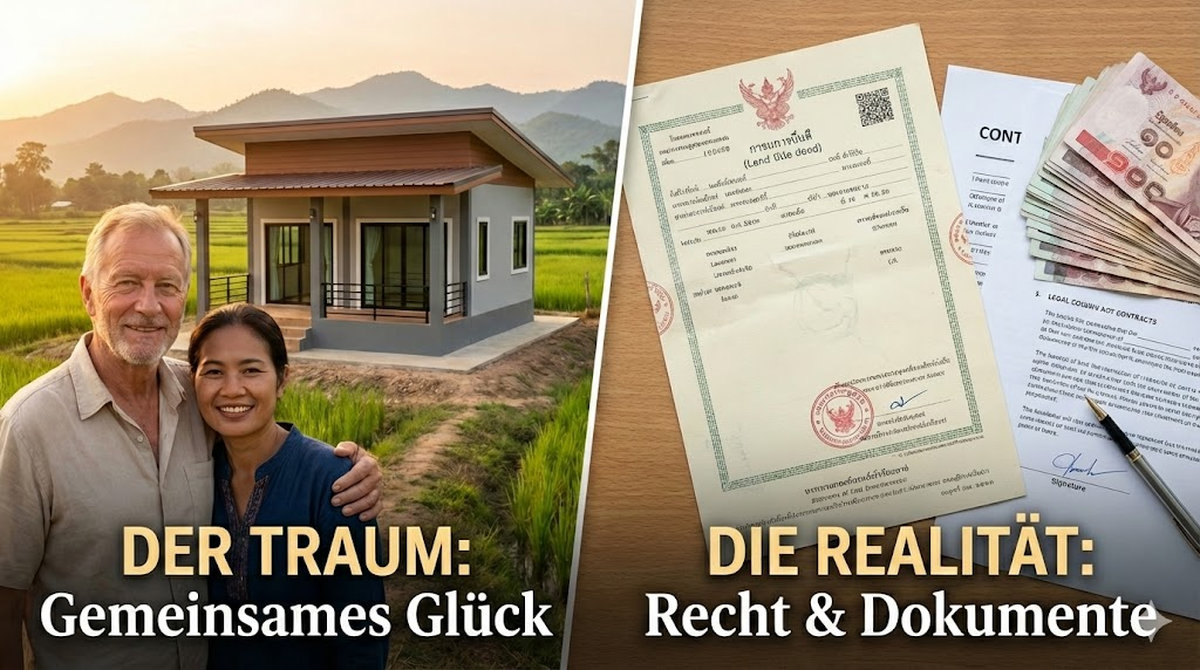 Die Sonne senkt sich über den Reisfeldern im Isaan, das Licht spiegelt sich in den Fenstern eines neu errichteten Bungalows. Für viele nicht-thailändische Männer ist es der große Traum: den Lebensabend in Thailand verbringen, in einem selbst finanzierten Haus, gemeinsam mit der thailändischen Partnerin.