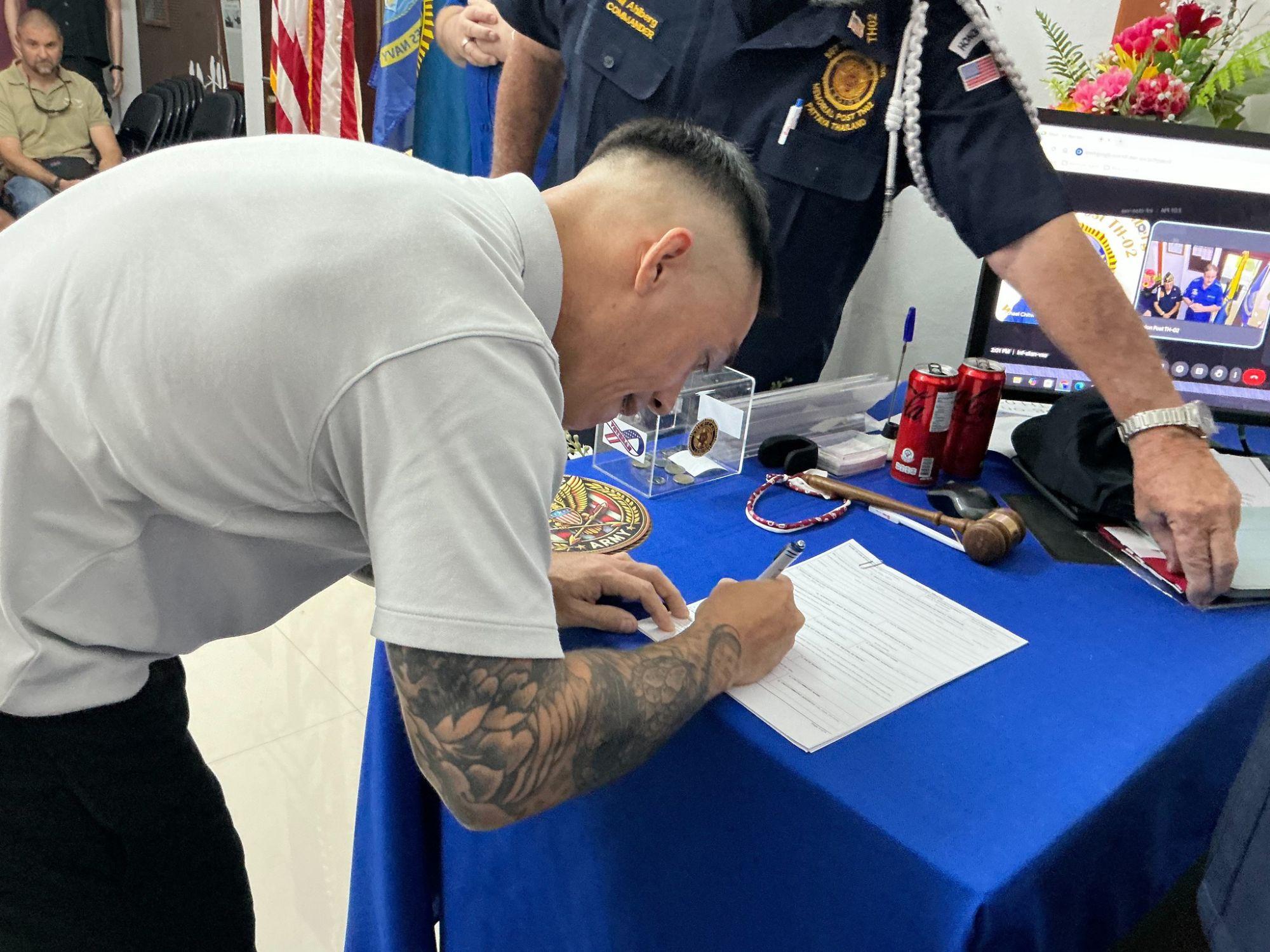 Es gibt eine Besonderheit bei diesem Eintritt. Man glaubt, Billy ist der erste Mensch, der sich direkt von Thailand aus für die US-Marine meldet. Das macht den Tag für alle Anwesenden noch wichtiger. Es ist ein seltener Vorgang in dieser Region Asiens.