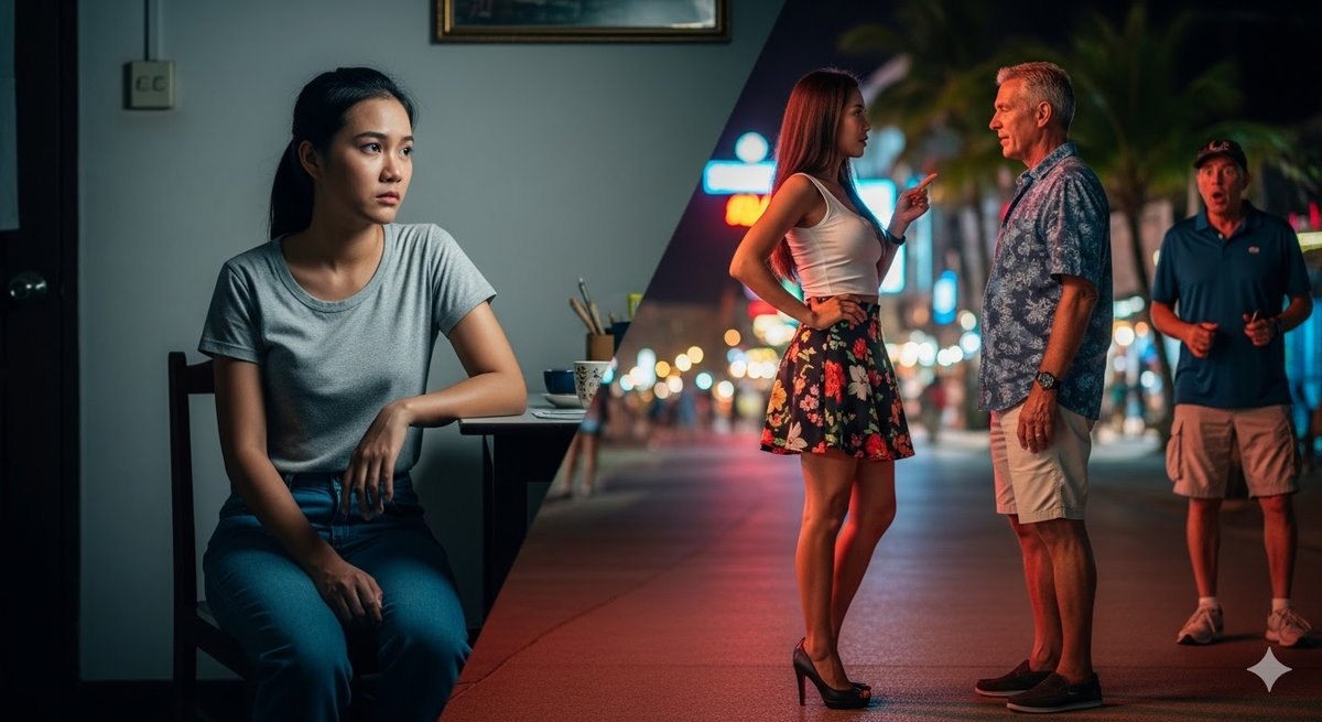 Während wir noch miteinander redeten, kam ein anderer Ausländer auf sie zu – offenbar ein Stammkunde. Er ignorierte mich komplett. Und sie? Sie wandte sich ihm sofort zu, verhandelte vor meinen Augen den Preis und ging mit ihm mit. Als wäre ich Luft.