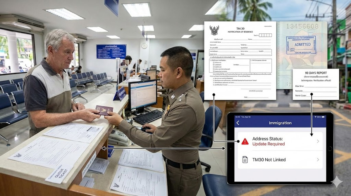 Ein Langzeitresident steht am Schalter der Immigration-Behörde in Thailand und will seine 90-Tage-Meldung abgeben. Er hat alle Dokumente dabei und rechnet mit einer schnellen Abwicklung. Doch der Beamte schüttelt den Kopf: Im System fehlt die aktuelle Wohnsitzmeldung. Obwohl eine Agentur mit dem Jahresvisum beauftragt war, ist kein gültiges TM30 im digitalen Register hinterlegt.