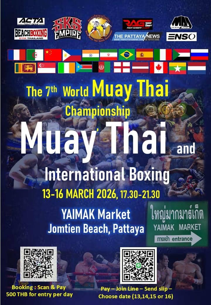 Die 7. World Muay Thai Championship bringt laut Veranstalter ein Feld von etwa 100 Athleten nach Pattaya, die aus verschiedenen Ländern anreisen und in professionellen Duellen gegeneinander antreten.