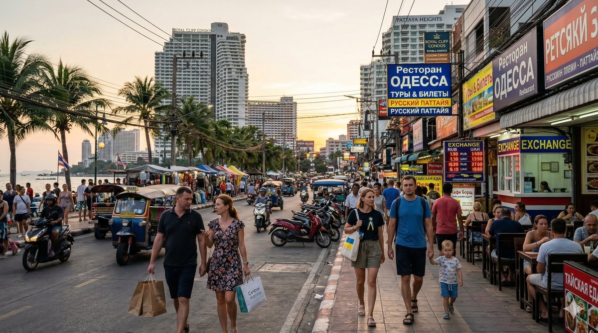 Die Gründe sind handfest: günstiges Leben, stabiles Internet, warmes Klima und eine bereits seit Jahren etablierte russischsprachige Gemeinde in Jomtien, dem südlichen Stadtteil Pattayas. Was früher eine Gemeinschaft von Rentnern und Geschäftsleuten war, hat sich nach 2022 deutlich verjüngt und verbreitert.