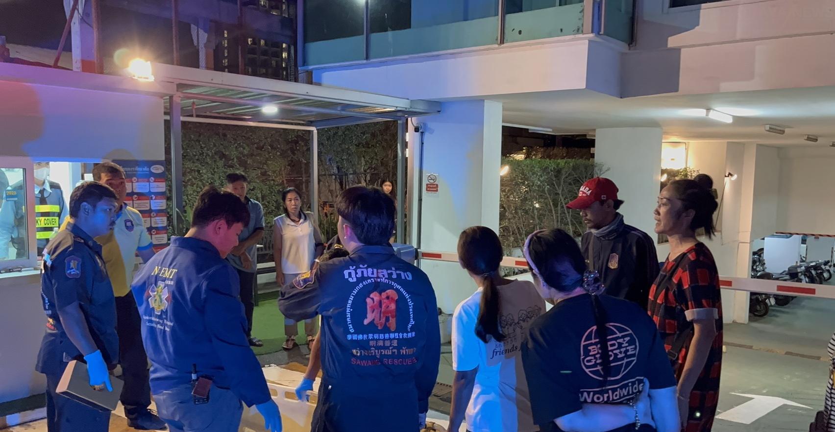 Der Notruf erreichte die Sawang Boriboon Thammasathan Pattaya Rescue Unit um 23.36 Uhr, als Passanten einen verletzten Mann am Eingang eines Condominiums in Soi Bongkoch 8 meldeten.
