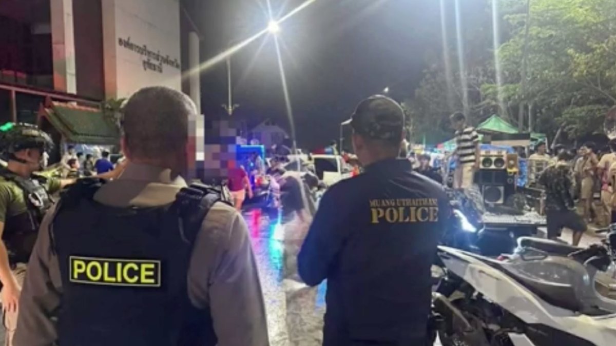 Der Vorfall ereignete sich am 13. April 2026 gegen 20.00 Uhr während des Songkran-Wasserspiels auf dem Suphannika-Platz an der Si Uthai Road, direkt vor dem Provinzamt von Uthai Thani.