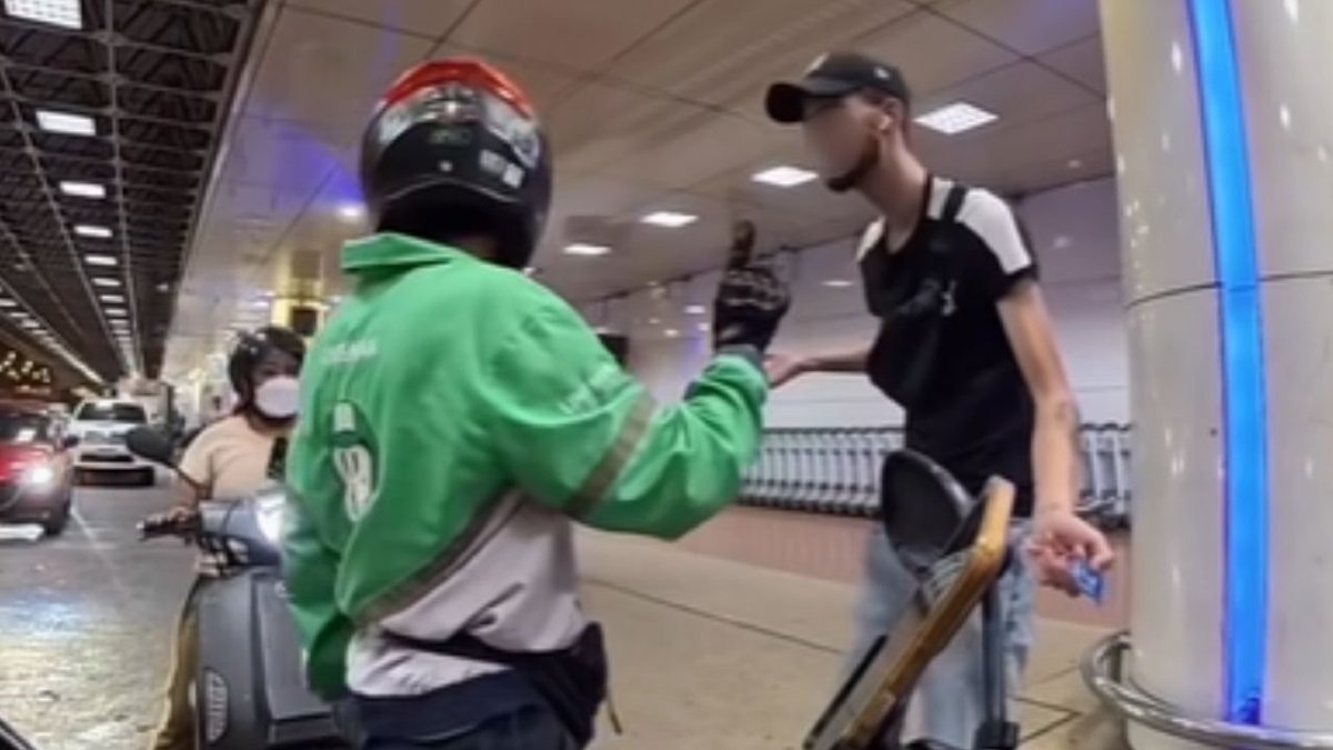 Ein App-Motorradtaxifahrer veröffentlichte am 20. April Videos eines Zahlungsstreits auf Facebook. Die Auseinandersetzung spielte sich vor einem Passagierterminal am Don Mueang International Airport ab.