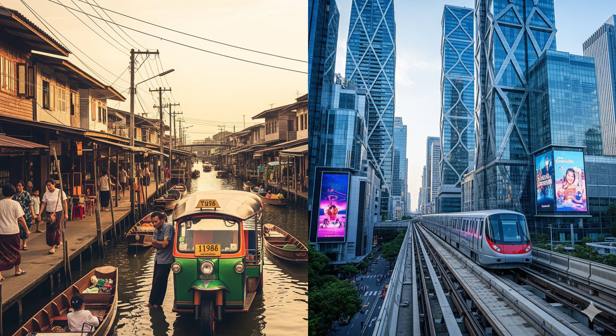 Heute verbindet der Skytrain weite Teile der Stadt, die U-Bahn ergänzt das Netz, Taxis rechnen per App ab. Der Flughafen Suvarnabhumi ist mit dem Expresszug in 30 Minuten erreichbar. Inlandsflüge verbinden Bangkok mit Chiang Mai oder Phuket für manchmal unter 1.000 Baht – Strecken, für die man früher einen ganzen Tag im Bus saß.