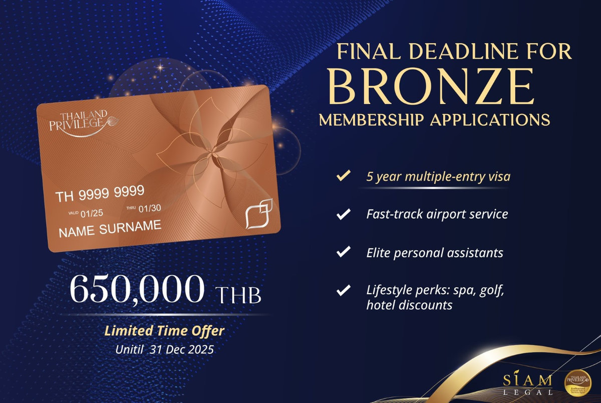 Das dramatischste Signal der Krise: Thailand beerdigt sein Bronze-Programm. Alle neuen Anträge für die Bronze-Mitgliedschaft müssen bis spätestens 31. Dezember 2025 eingereicht werden – danach ist Schluss mit der günstigsten Elite Visa-Option. Die Bronze-Variante kostete bisher 650.000 Thai Baht (etwa 17.000 Euro) für fünf Jahre, doch offenbar fanden sich nicht genug Interessenten.