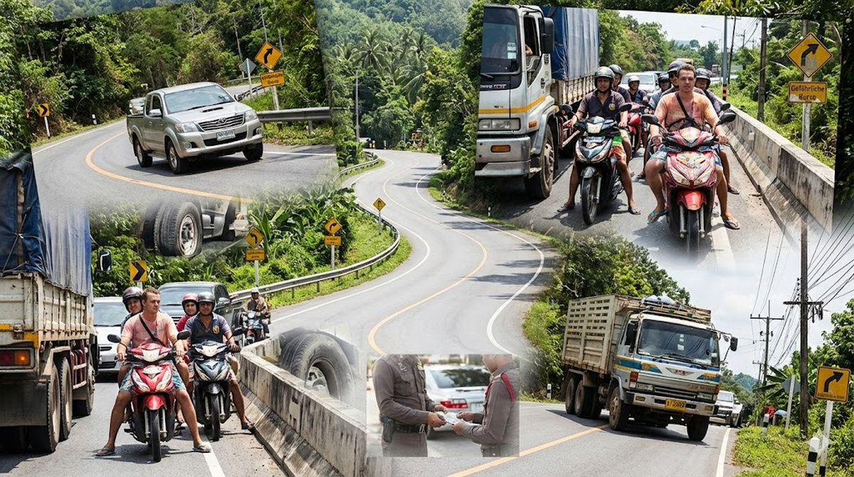 Kurven sind in Thailand oft Orte des Schreckens. Viele Fahrer schneiden die Kurven so extrem, dass sie komplett auf der Gegenfahrbahn landen. Die Sichtlinie spielt dabei für sie keine Rolle.