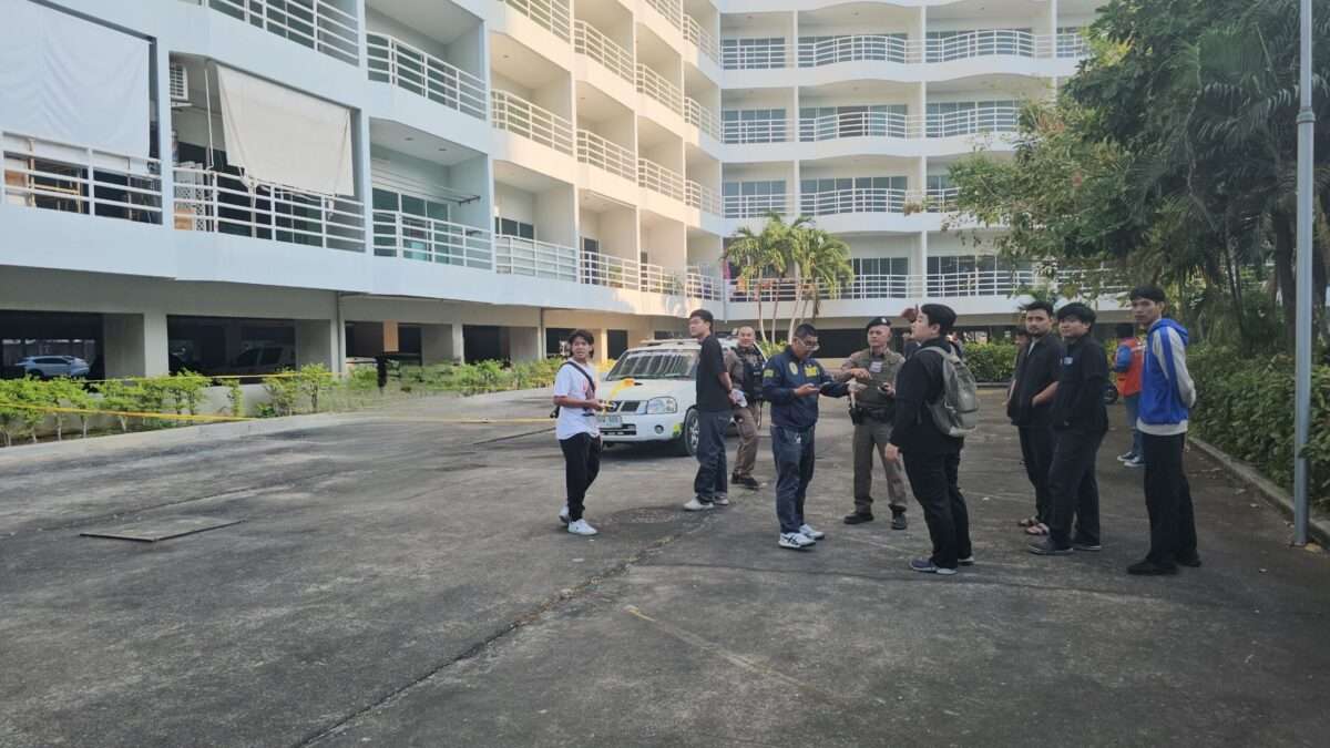 Der Notruf war laut Pattaya City Police gegen 7.30 Uhr eingegangen. Polizeibeamte, Ermittler, Touristenpolizei und Rettungskräfte der Sawang-Boriboon-Stiftung rückten zu einem 27-stöckigen Condominium in Moo 12 im Bereich Jomtien aus.