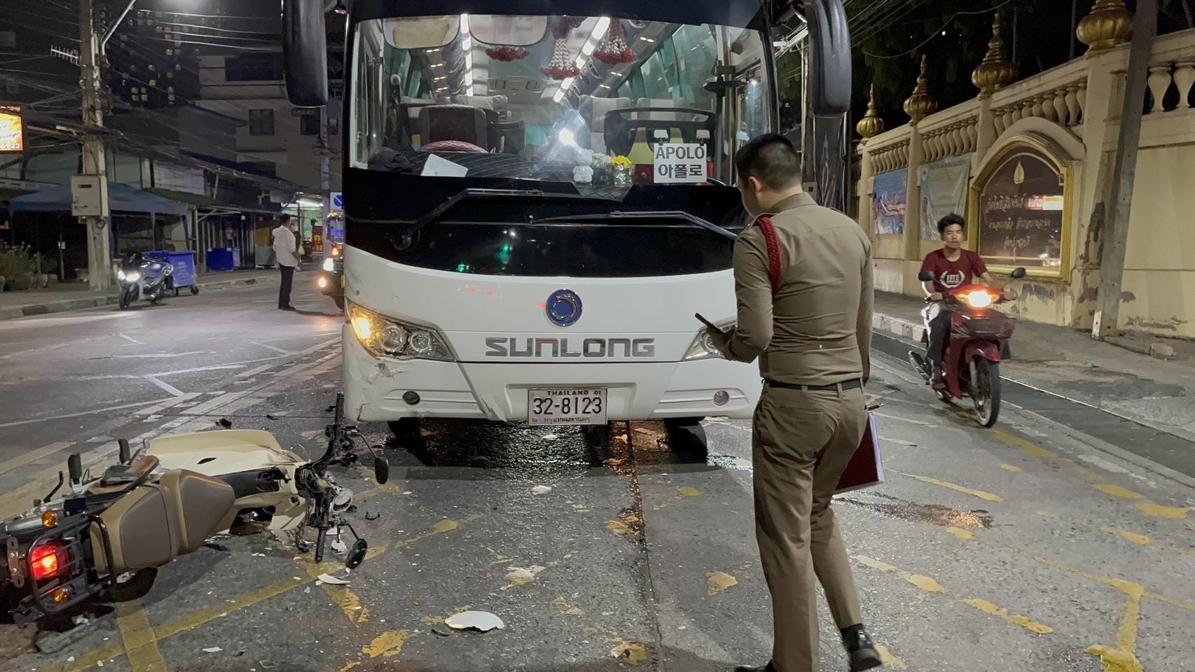 Der diensthabende Police Lieutenant Colonel Chiwaphat Chaiakan, stellvertretender Ermittler der Pattaya City Police Station, erhielt die Meldung über eine Kollision zwischen Motorrad und Touristenbus mit einem schwer verletzten Fahrer und alarmierte umgehend Rettungskräfte sowie ein medizinisches Team.
