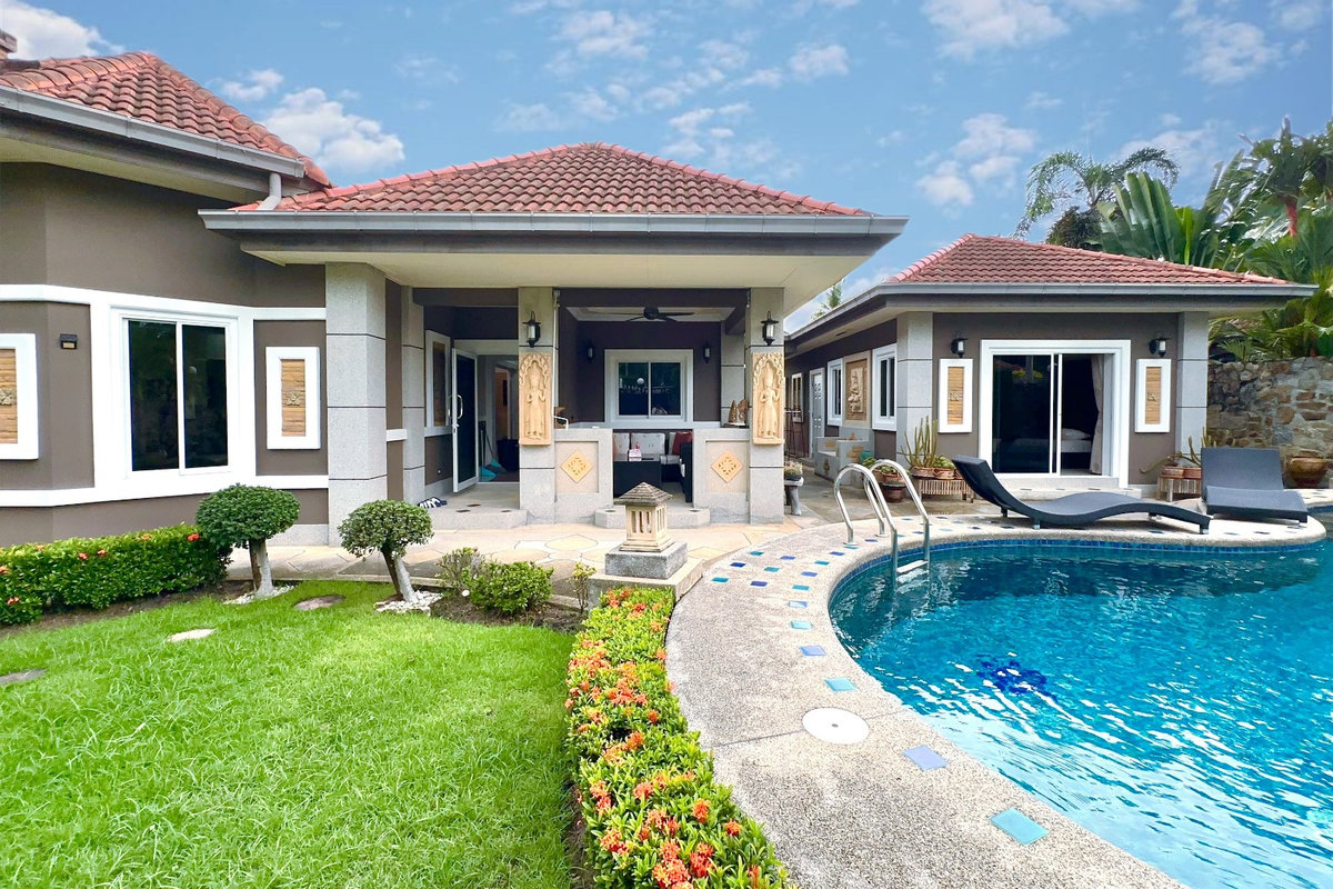 Ein seltenes Angebot erwartet Käufer in Pattaya: Eine freistehende, hochwertige Poolvilla mit separatem Gästehaus wird jetzt im Rahmen eines Notverkaufs um 2 Mio. THB reduziert und steht für nur 8,9 Mio. THB zum Verkauf – ein außergewöhnlicher Preis für ein Objekt dieser Klasse.