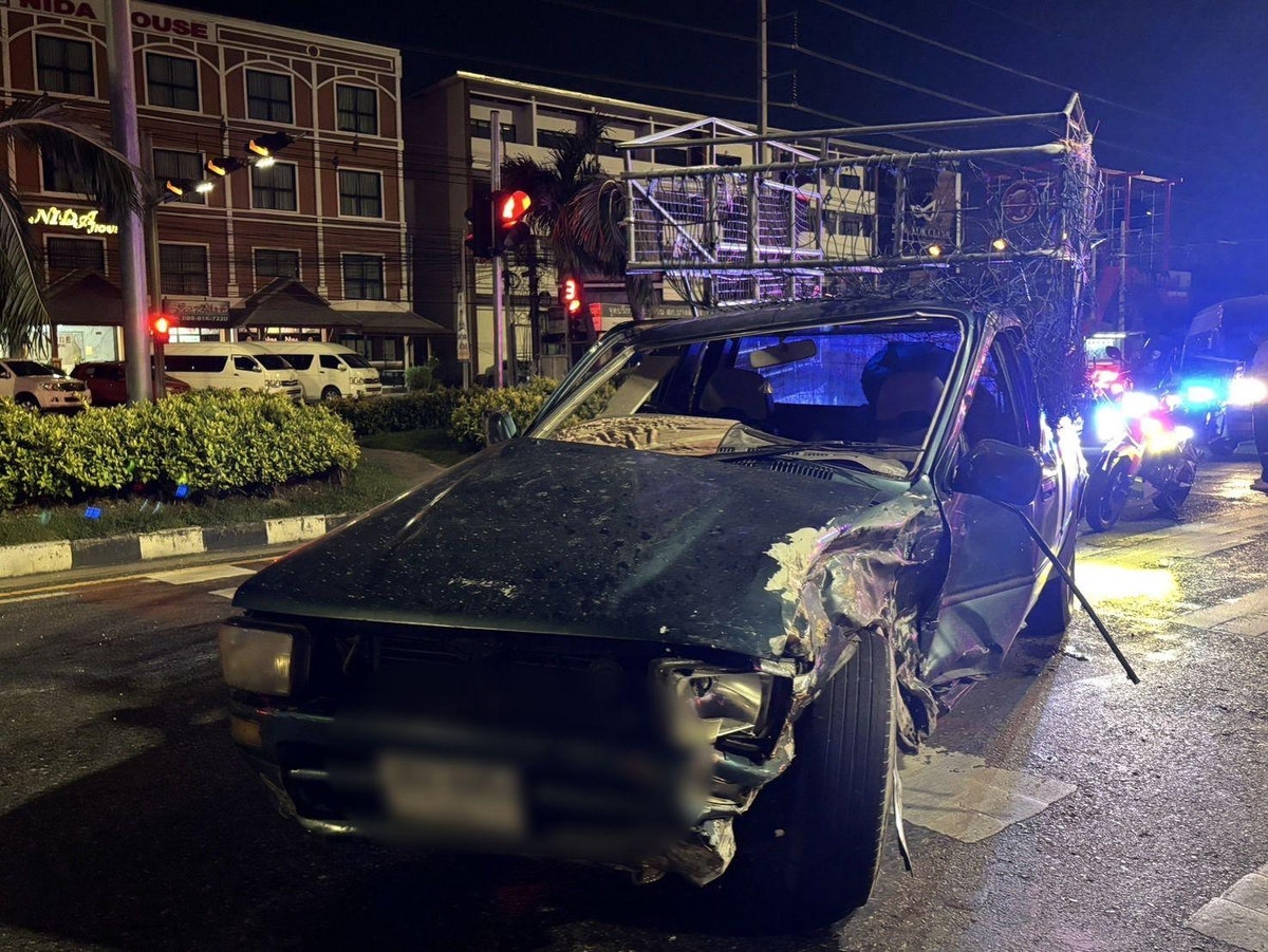 PATTAYA – Ein alkoholisierter Fahrer hat in den frühen Morgenstunden des 16. Juli 2025 einen folgenschweren Unfall an der Match Factory-Kreuzung verursacht. Bei dem Zusammenstoß zweier Pickups wurden drei Personen verletzt, darunter eine Frau mit Kopfverletzungen. Die Polizei ermittelt nun wegen Fahrens unter Alkoholeinfluss.