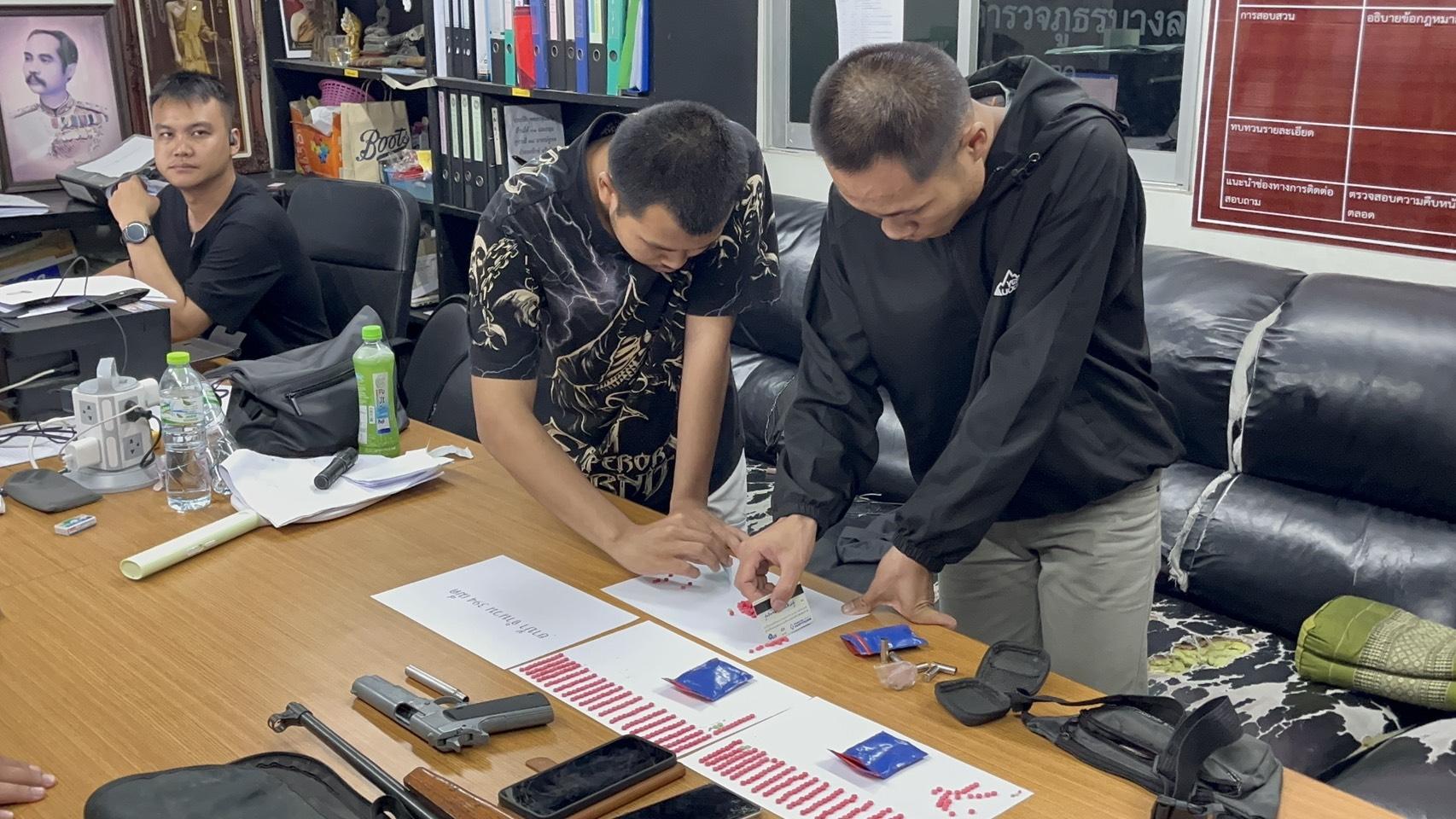 Zudem wurden zwei selbstgebaute Schusswaffen entdeckt. Eine Überprüfung ergab, dass gegen Wanich bereits ein Haftbefehl des Provinzgerichts Pattaya vom März 2025 vorlag – unter anderem wegen versuchten Mordes, gemeinschaftlichen unerlaubten Waffenbesitzes und weiterer Waffendelikte aus einem früheren Fall im Zuständigkeitsbereich der Polizei Huay Yai.