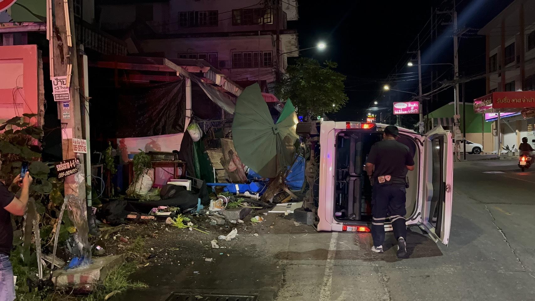 PATTAYA, THAILAND â Ein weiĂer Minivan ist in Pattaya in eine Wohnmauer gerast und umgestĂŒrzt, der mutmaĂliche Fahrer floh zunĂ€chst zu FuĂ und wurde wenig spĂ€ter im Wohngebiet festgenommen.