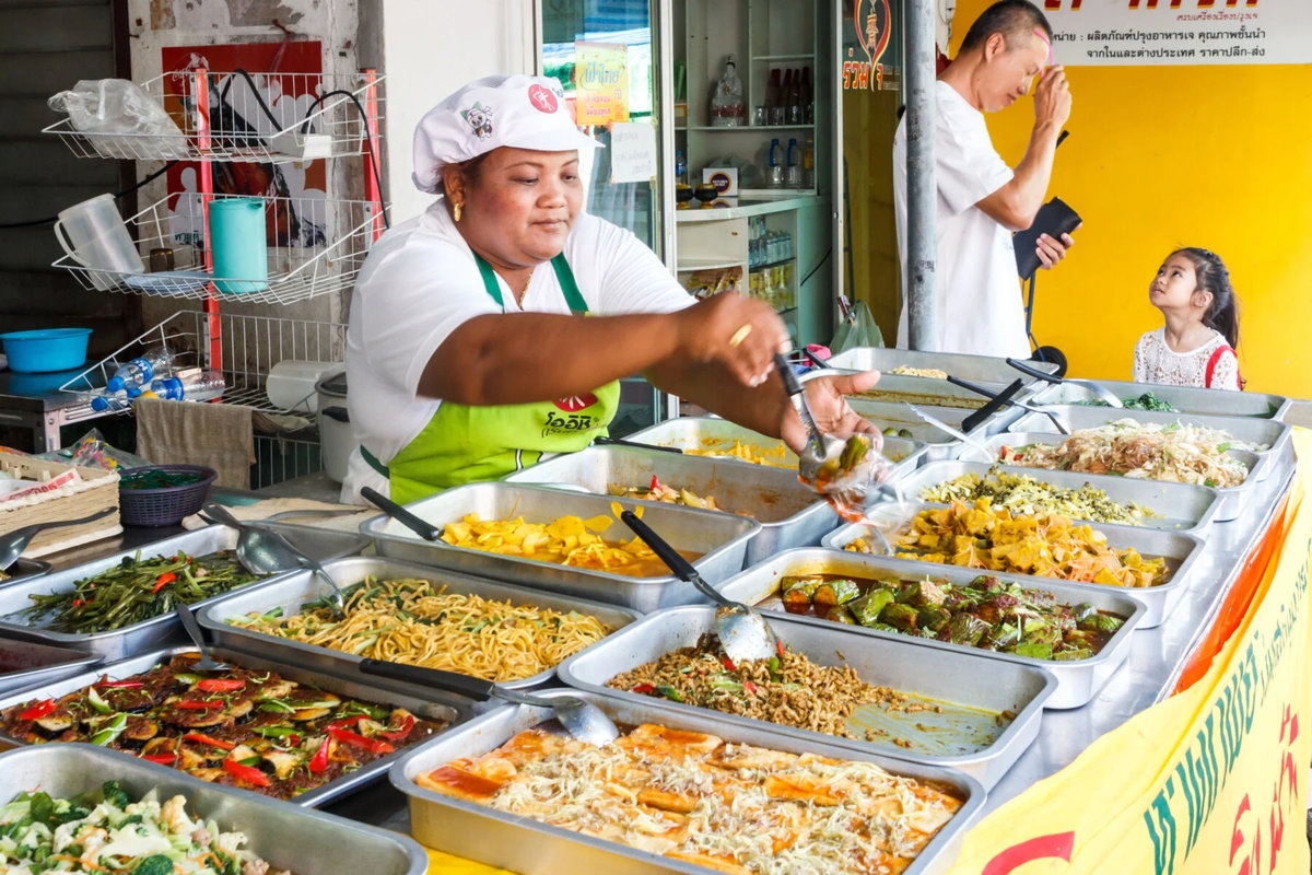 Die kulinarischen Angebote während des Thailändischen Vegetarischen Festivals sind eine der Hauptattraktionen. Über den Verlauf der zehn Tage werden Teilnehmer und Besucher eingeladen, eine breite Vielfalt vegetarischer Gerichte zu genießen, von denen viele über Generationen weitergegeben wurden. Während die Mehrheit der Speisen pflanzlich ist, lässt sie sich oft von traditionellen fleischbasierten Gerichten inspirieren und bietet einen Geschmack vertrauter thailändischer Aromen durch eine vegetarische Linse.