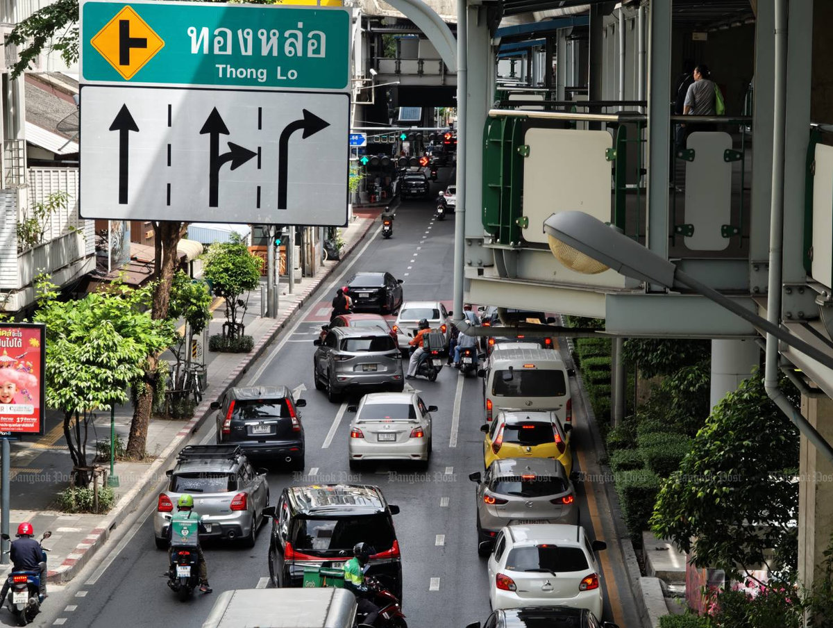 Ein Verkehrsschild auf der Sukhumvit Road in Richtung Thong Lo (Soi 55) sorgt derzeit für hitzige Diskussionen in sozialen Medien. Die Frage aller Fragen: Darf man in der Mittelspur bei Rotlicht stehen bleiben, um rechts abzubiegen? Die Antwort überrascht viele Autofahrer.