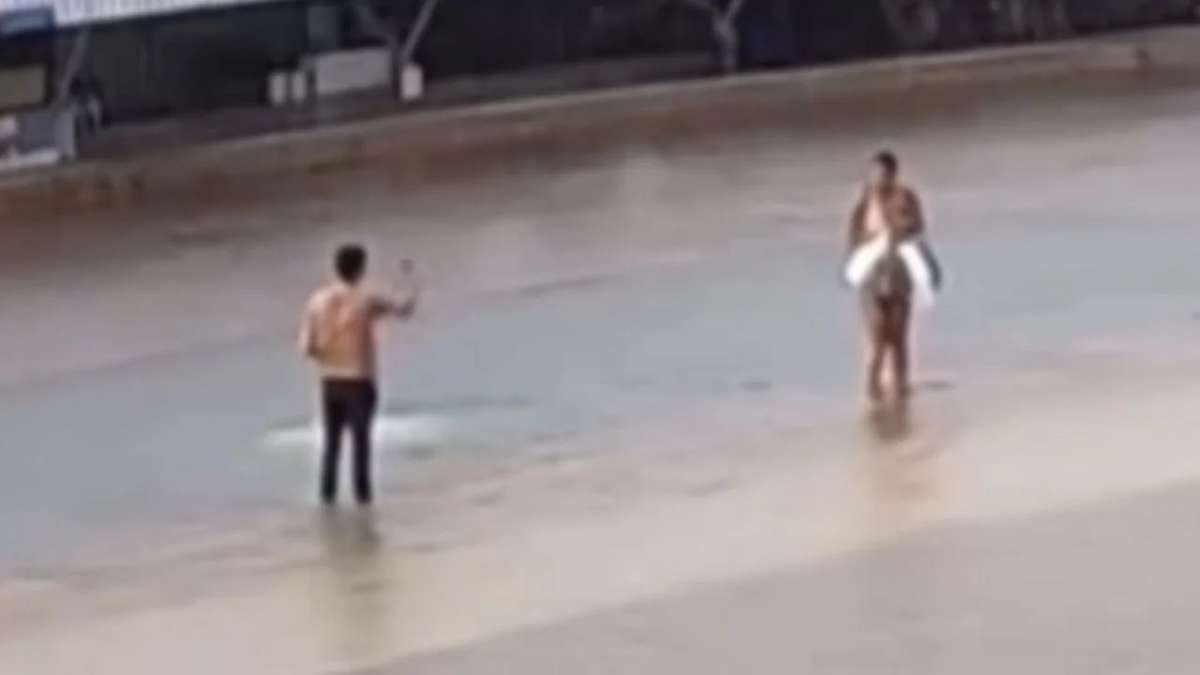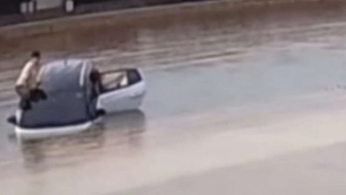 Doch das Paar hatte unglaubliches Glück: Der Fahrer konnte sich durch ein Fenster retten und auf das Dach des sinkenden Wagens klettern. Seine Begleiterin, vermutlich seine Freundin, verließ das Fahrzeug durch die Hecktür – mit ihren Habseligkeiten in der Hand.