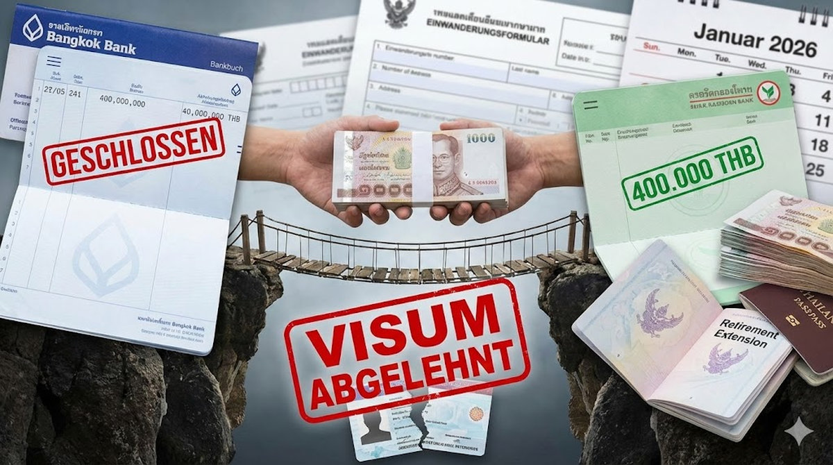 Dieser Artikel basiert auf realen Diskussionen und Informationen aus dem Januar 2026. Bitte beachten Sie, dass sich Einwanderungsbestimmungen in Thailand kurzfristig ändern können und stark vom Ermessen des jeweiligen Beamten abhängen. Die genannten Euro-Beträge dienen der Orientierung und basieren auf einem Wechselkurs von ca. 36,67 THB/EUR. Konsultieren Sie im Zweifelsfall immer einen Visa-Agenten oder die offizielle Webseite des Thai Immigration Bureau.