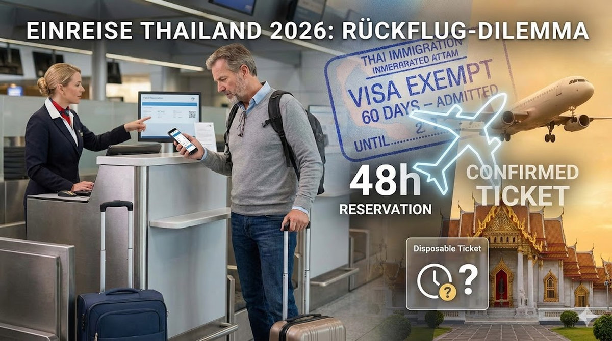 Der Puls steigt, wenn die freundliche Dame am Schalter in Frankfurt oder München plötzlich innehält. Sie tippt etwas in ihren Computer, runzelt die Stirn und stellt dann die gefürchtete Frage: „Haben Sie einen bestätigten Rückflug innerhalb von 60 Tagen?“ Für Reisende, die ihren Aufenthalt in Thailand flexibel gestalten wollen, ist dies der erste Stolperstein. Es ist nicht die thailändische Passkontrolle, die hier die erste Hürde darstellt, sondern die Fluggesellschaft noch auf europäischem Boden.
