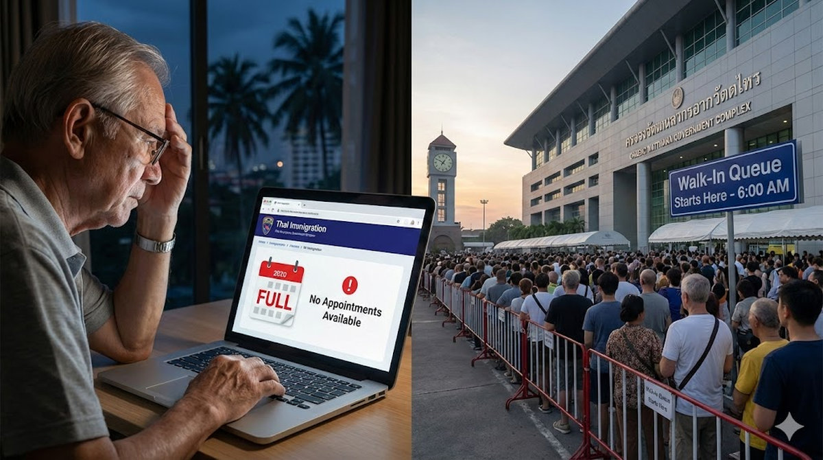 Klaus sitzt in seiner Wohnung in Bangkok vor dem Computer. Es ist der 13. Januar 2026. Sein Jahresvisum läuft in wenigen Tagen ab. Er klickt sich durch die Webseite der thailändischen Einwanderungsbehörde und sucht einen Termin. Doch überall sieht er nur rote Felder. Kein einziger freier Termin im ganzen Monat.