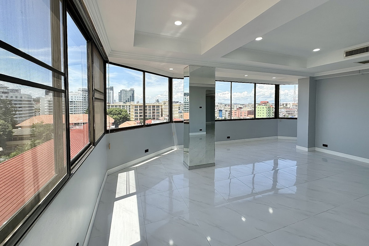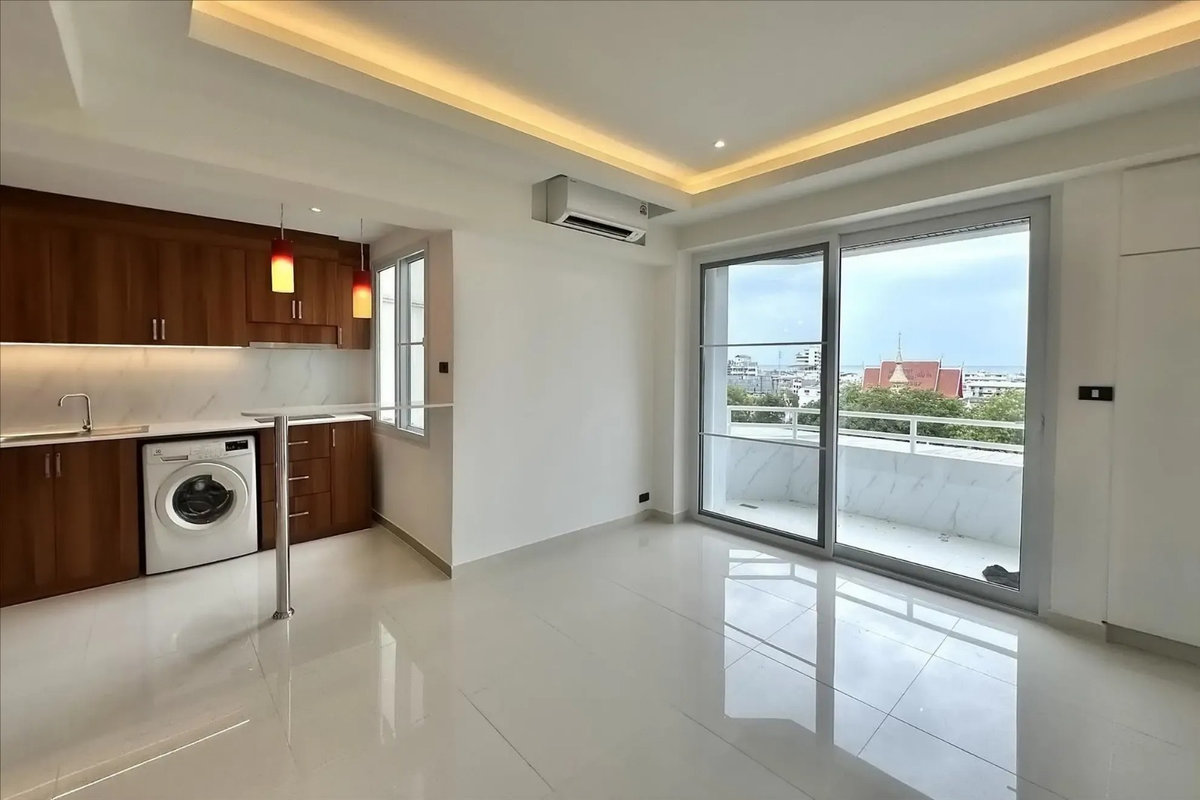 Wer Wert auf Raum und Privatsphäre legt, findet in dieser frisch renovierten End-Eck-Wohnung im Center Condo ein echtes Highlight. Auf rund 79 m² bietet die Einheit ein separates Schlafzimmer, ein modernes Badezimmer sowie einen offenen Wohnbereich und Balkon mit Meerblick und Ausblick über die Stadt.