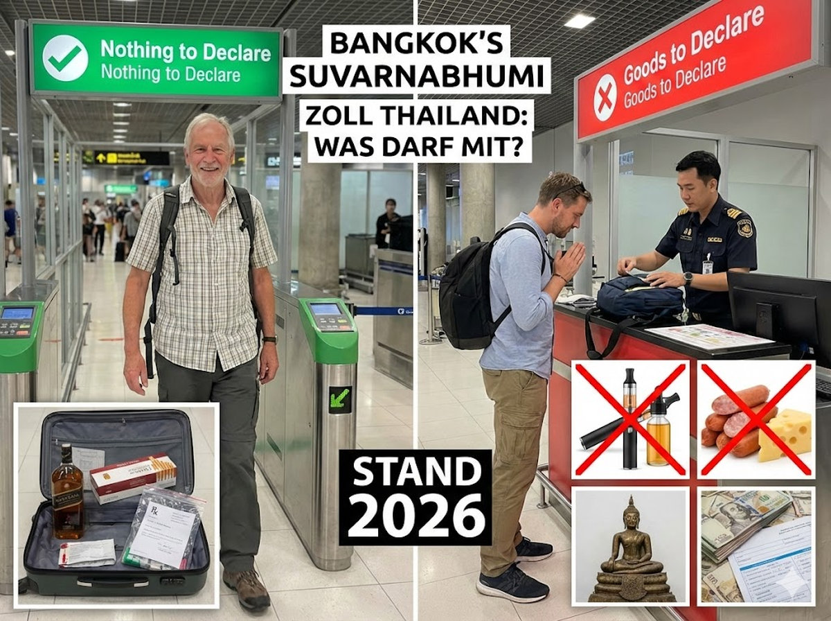 Dieser Artikel basiert auf den zum Zeitpunkt der Veröffentlichung im Januar 2026 gültigen Bestimmungen der thailändischen Zollbehörde. Gesetze können sich ändern. Für rechtsverbindliche Auskünfte kontaktieren Sie bitte direkt die thailändische Botschaft oder das Customs Department of Thailand. Alle Währungsangaben sind Richtwerte.