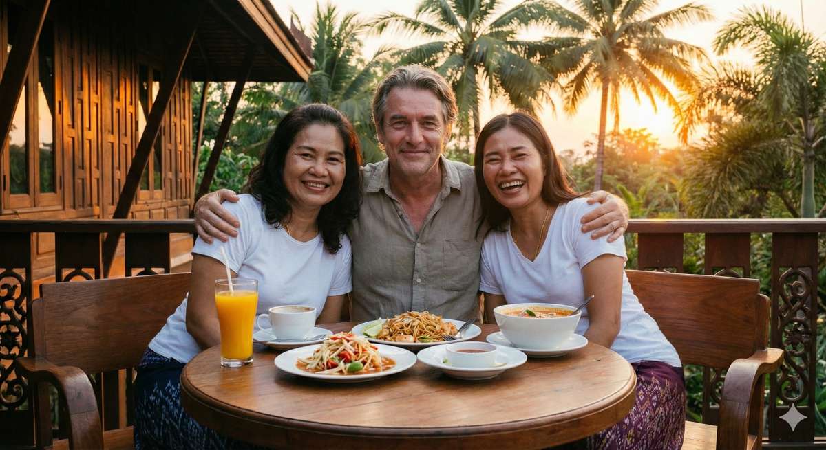 Jetzt kommt der Teil, bei dem deutsche Besucher nervös am Weinglas nippen. Thomas hat nämlich nicht nur eine Frau. Er hat zwei. Die zweite ist eine „Mia Noi“ – thailändisch für „kleine Frau“. Und nein, sie wohnt nicht heimlich um die Ecke.