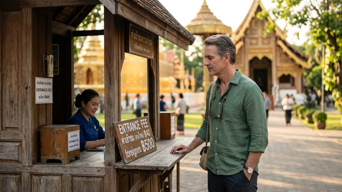 Am Eingang eines Nationalparks oder Tempels fällt es sofort auf: zwei Preisspalten auf derselben Tafel. Für Thai-Bürger eine niedrige Zahl, oft 20 bis 40 Baht. Für Ausländer ein Vielfaches – häufig 200 bis 400 Baht. Das sind bei aktuellem Kurs grob 5 bis 11 Euro mehr pro Ticket.