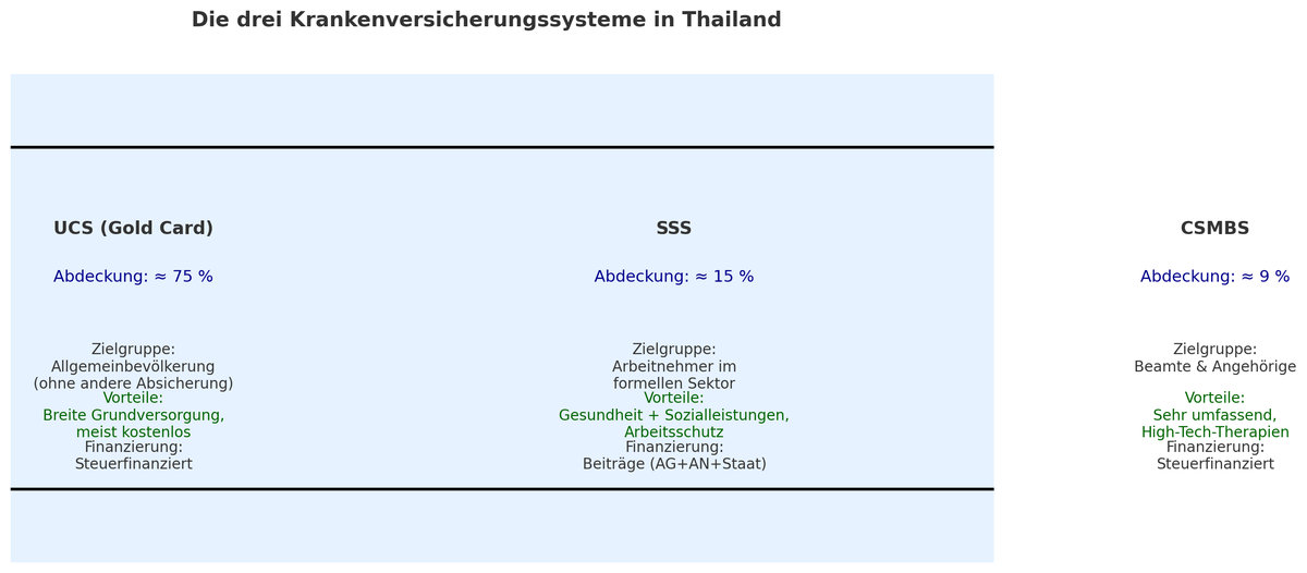 Die drei wichtigsten Krankenversicherungssystemen in Thailand und ihren Unterschieden: